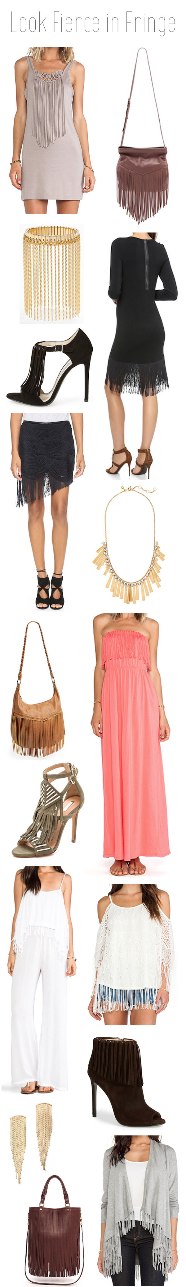 Fall 2014 is around the corner and fringe is on everything from earrings to booties! It's a fun style that is easy to wear. I would recommend only wearing one fringe item so your outfit doesn't look too busy.